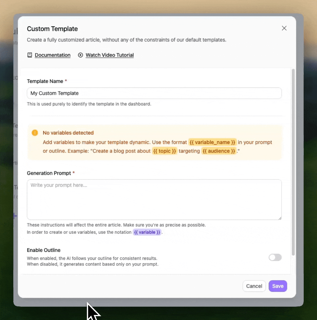 You can now automatically generate your custom template articles in multiple languages at once, making global content publishing faster and easier.